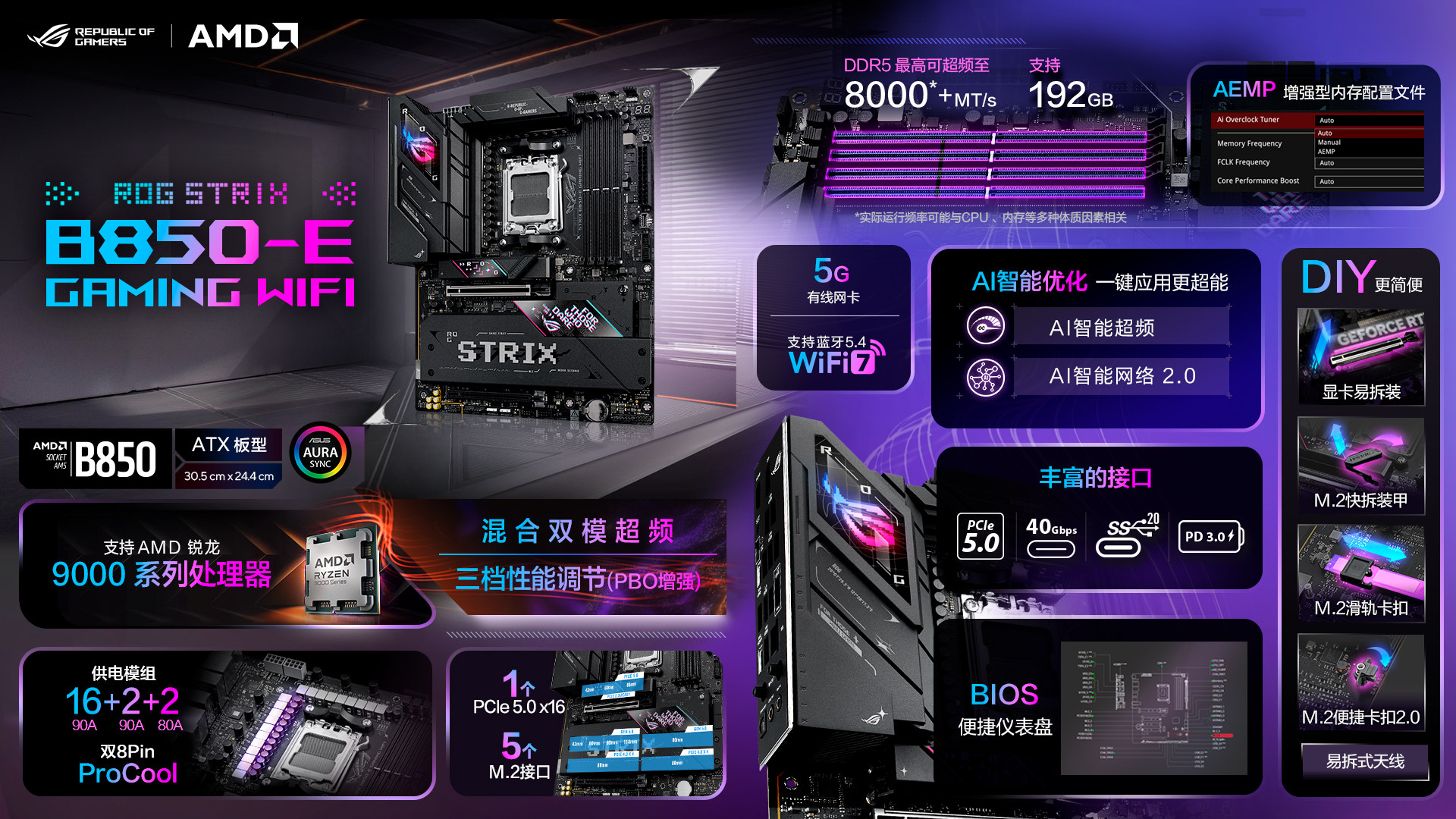 Материнская плата ROG STRIX B850-G GAMING WIFI Fubuki TUF Heavy Gunner b850 поддерживает игровые материнские платы AMD серии 9800X3D/9700X для киберспорта