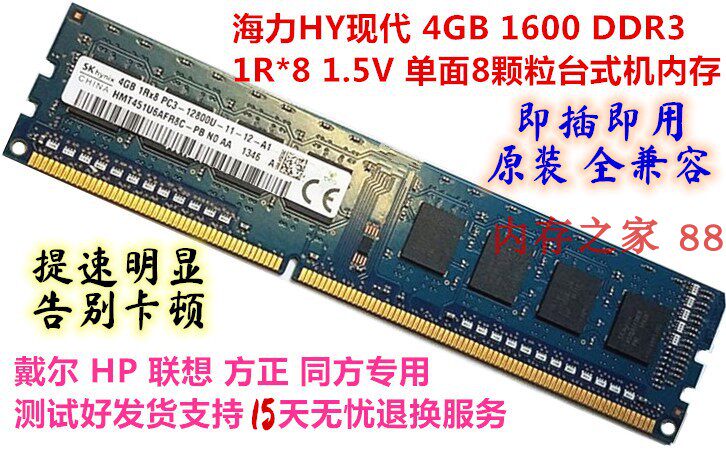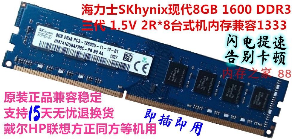 Hynix Hyundai Skhynix Оригинальная аутентичная полоса памяти таблицы DDR3 8GB 4GB 1600 МГц PC3-12800U.Он в основном используется на Dell HP Lenovo и других брендах.Интерфейс 240pin, напряжение 1,5 В, двойные 16 частиц, совместимые с 1866 и 1333 МГц.Профессиональное тестирование, поддержка 15 -дневных услуг по возврату без беспокойства!Поддержите подлинную проверку!