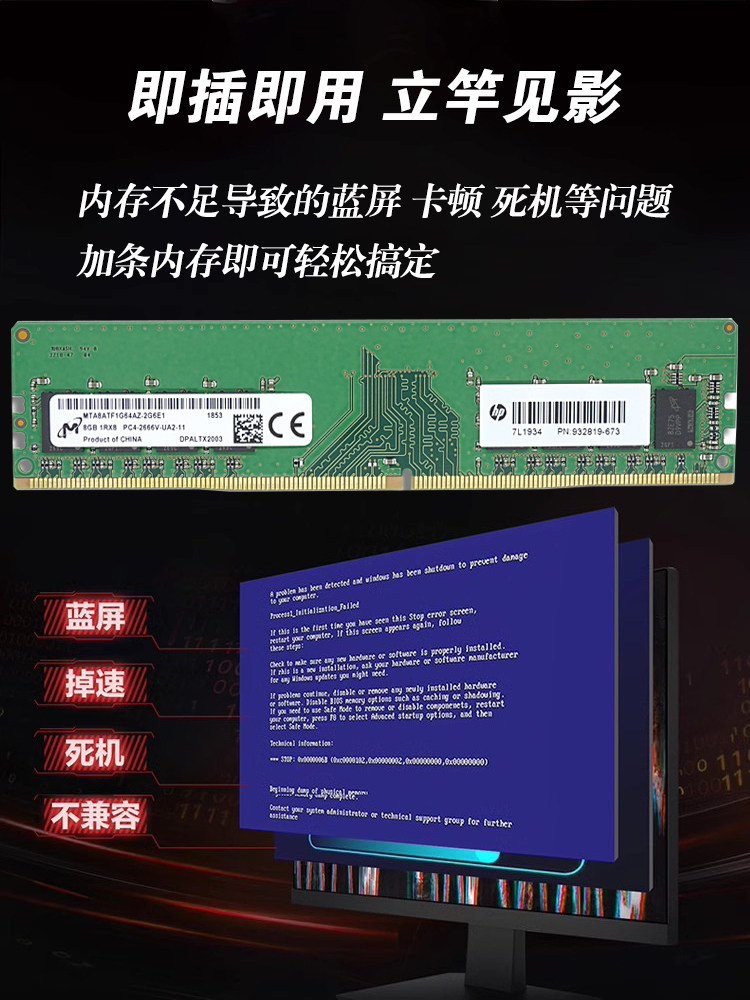 HP/惠普 Оригинальная память 8G DDR4 2400 четвертого поколения для настольного компьютера PC4-2400T, совместимая с 4G