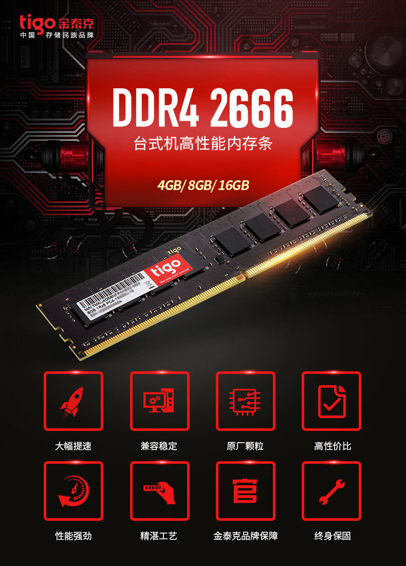 tigo/金泰克 16G 8G DDR4 2666 2400 2133 Память настольного компьютера 16G 8G