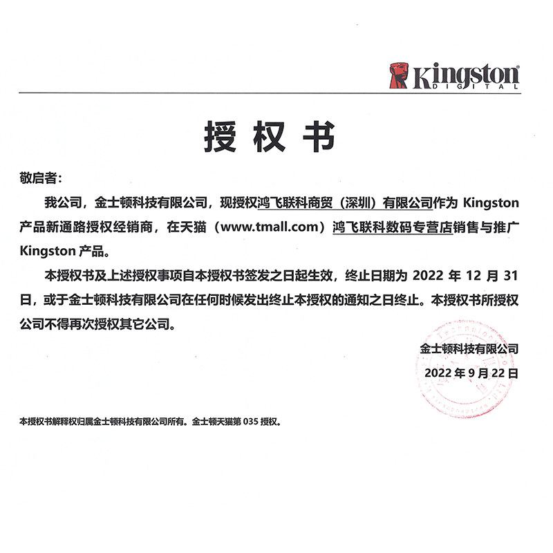 Продавец:金士顿鸿飞联科专卖店