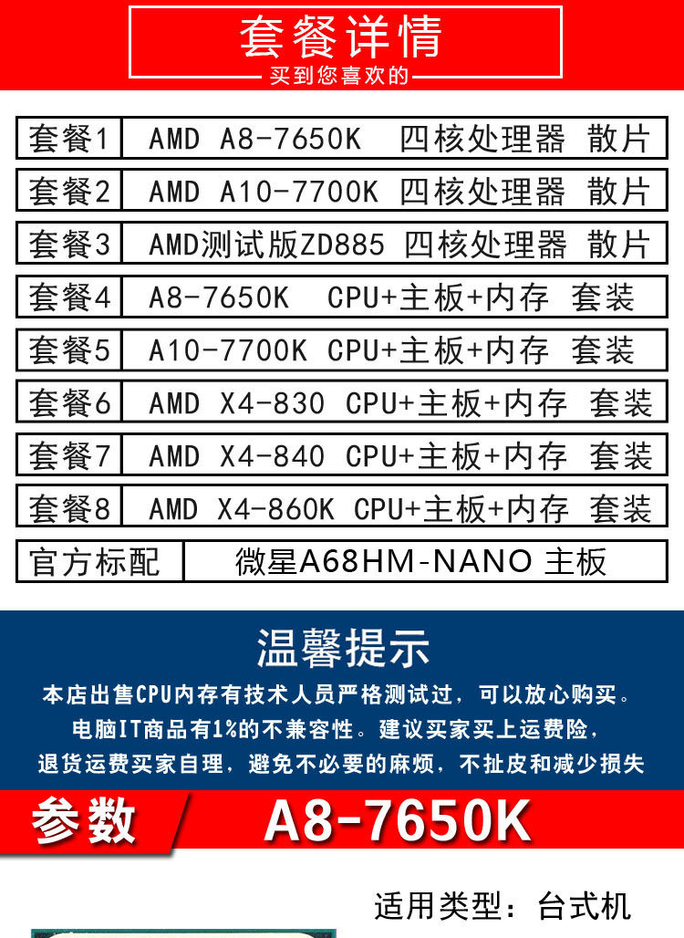 AMD A10 6800K 6790K 7700K 5800K LOSE TABLET CPU CPU FM2 APU Кваварная пакет материнской платы