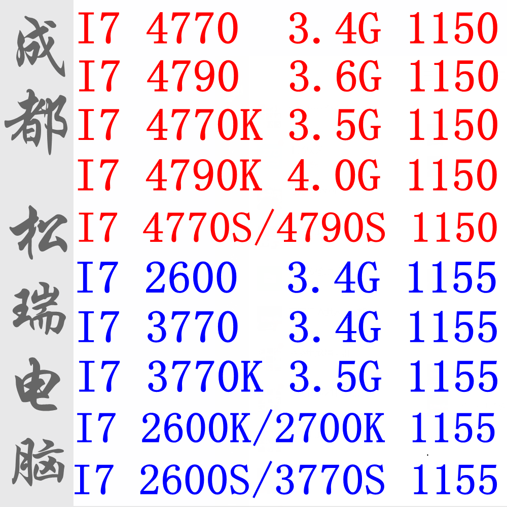 I7 4770 4790 4770K 4790K I7 2600 3770 2670K 3770S ЦП