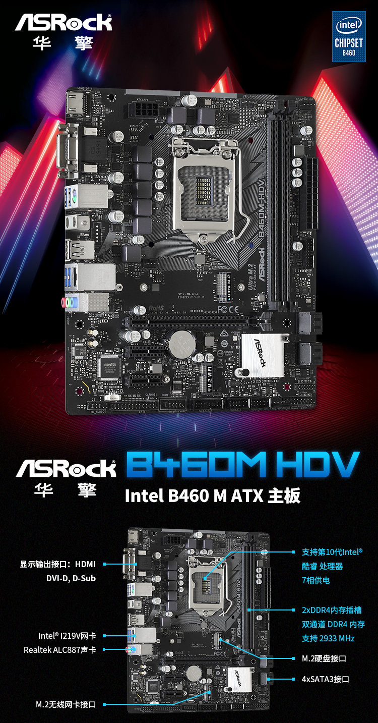 - I3-10105 Boxed+Huaqing B460M HDV Материнская плата