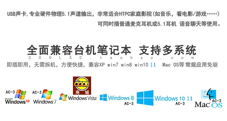 Внешняя звуковая картаподдерживатьблокнотНастольный компьютерОдна машинаПланшет компьютер XP Win7 Win8 Win10 11 32 или 64 -бит 5.1наушникиАктивный динамикПилот Аудио или волокноБыть доступнымСвязь