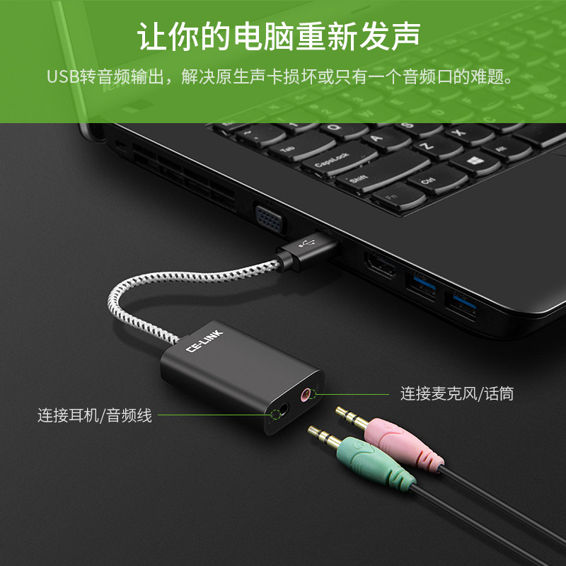 Celink USB внешняя звуковая карта без драйвера -ноутбука для ноутбука кабель Внешний независимый конвертер гарнитуры PS4 Микрофон микрофон Ешьте курицу Live Kicu Sound 3.5 Two -In -One