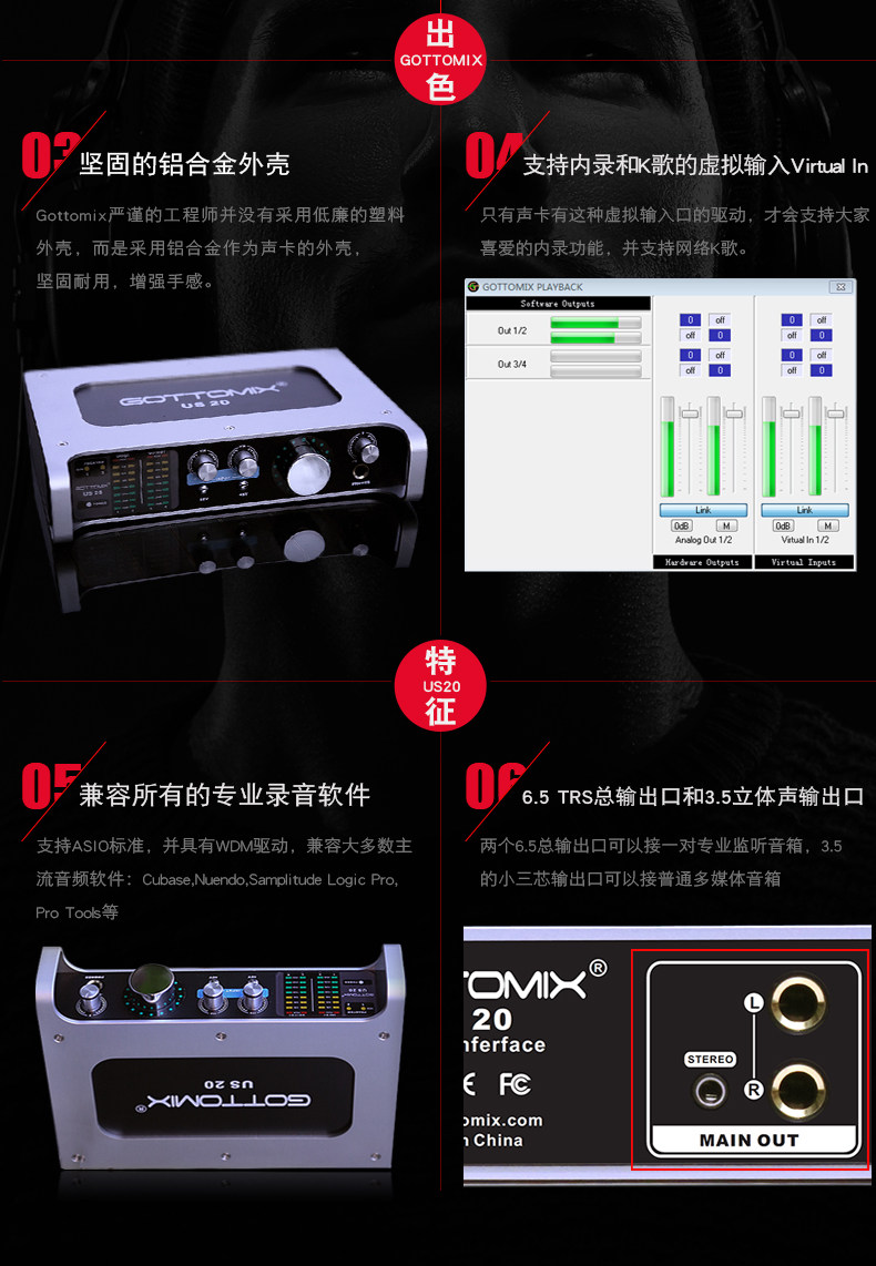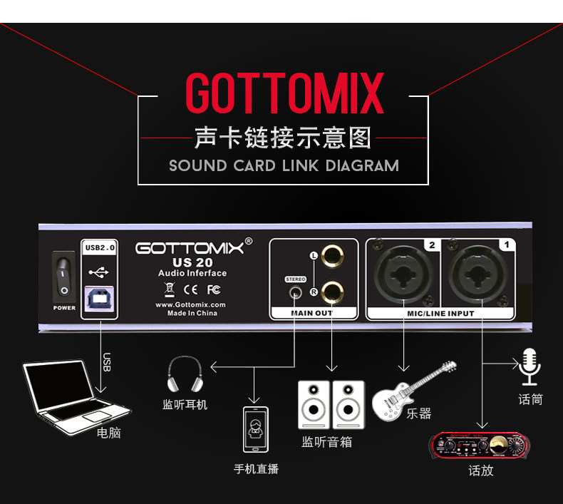 Gottomix US20 профессиональная внешняя звуковая карта ASIO, запись живого караоке, VST-стойка, точная настройка