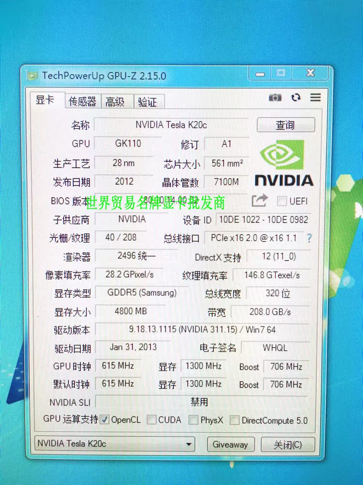 Видео памяти Tesla K20C составляет 384-битная, емкость с 5 ГБ GDDR5И поддержка проверки ошибок ECC, пропускная способность 200 ГБ/с.Кроме того, энергопотребление тепловой конструкции расчетной карты составляет 225 Вт, 6+8 Стички с помощью питания, а рассеивание тепла обращается на сервере пассивнымНемойДизайн, лицо рабочей станции, рабочая станция и рабочая станция