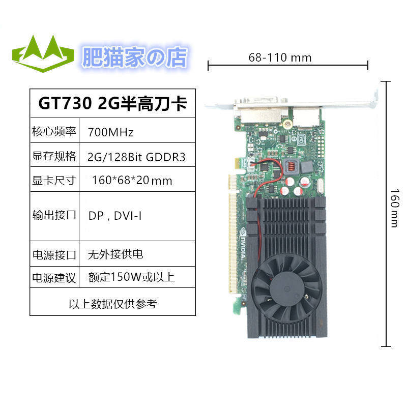 Новая половина Blade Blade Card 128 -бит GT730 2G, ядра GF108, 128 -битный дисплей широкий, не -GK 64 широкая версия позиции, чистая общепринятая версия, один слот -радиатор, полный солидный конденсатор, питание Octopus MOS, супер -продольный!