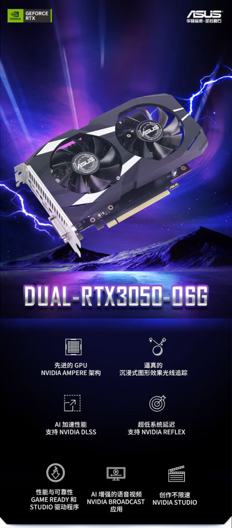 | Цвет: | [Черный снежный барс] ASUS DUAL-RTX3050-O6G, [TUF Esports] ASUS TUF-RTX3050-O8G-GAMING |