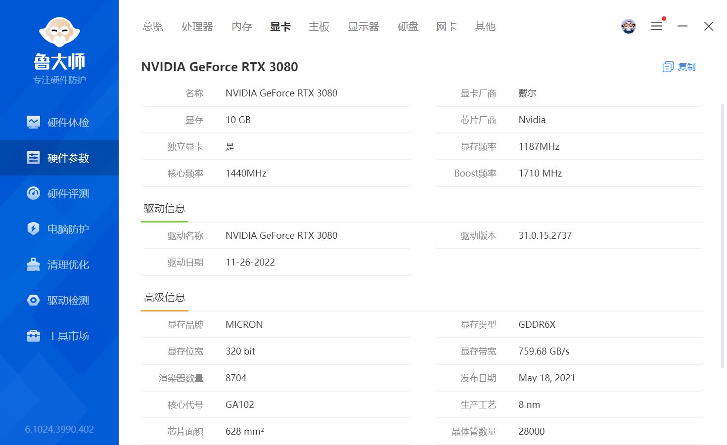Новая оригинальная графическая карта Dell Nvidia RTX3080 10G Y5K9F DP HDMI