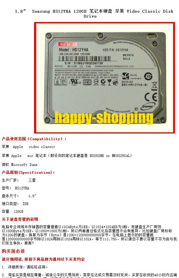 1,8 "120G MacBook Air A1237 HS12YHA Замените HS082HB/A MK8025GAL