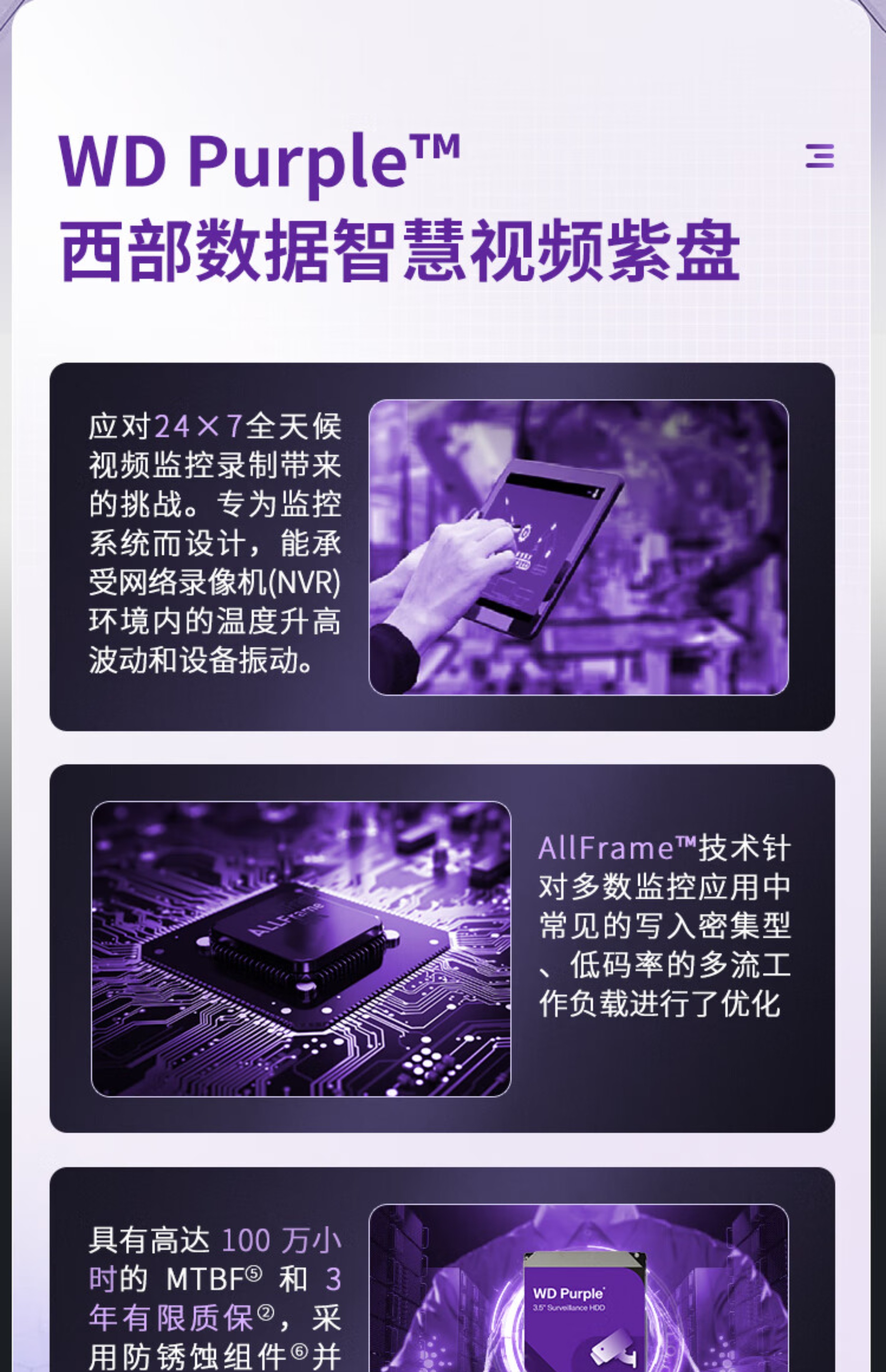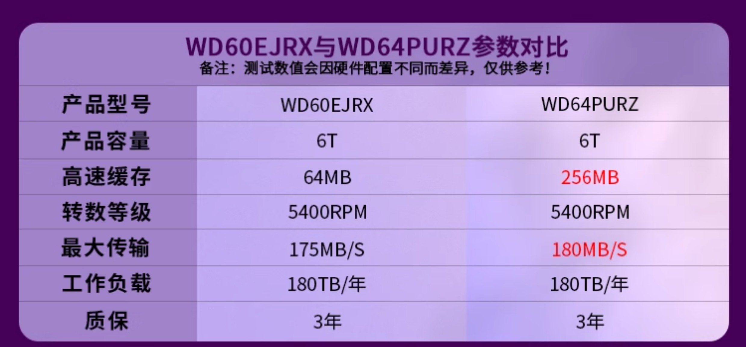 WD/西部数据 WD64PURZ/WD60EJRX Western Digital 3,5-дюймовый 6T 6T Desktop NAS Мониторинг фиолетового диска жесткий диск