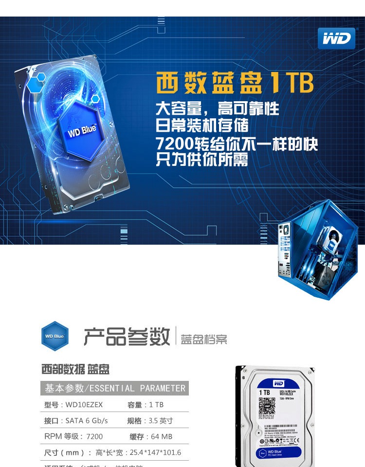 WD/Western Data WD10EZEX 1TB Blue Disk Desktop Computer West Digital Mechanical жесткий диск