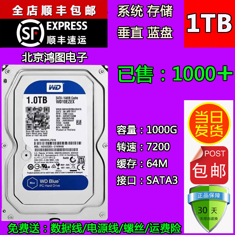 Новый WD10EZEX Western Digital 1T Machinery Hard Disk 1TB Мониторинг жесткого диска видео 7200 об / мин 64 м Вертикальный PMR