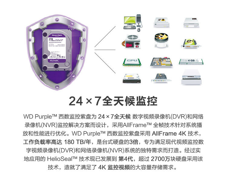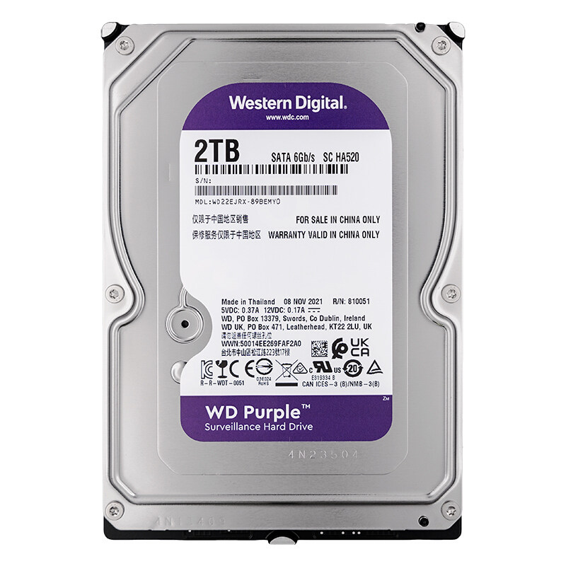 Western Data/WD WD22EJRX Мониторинг жесткий диск фиолетовый диск 2T SATA3 3.5 -INCH Desktop 2TB