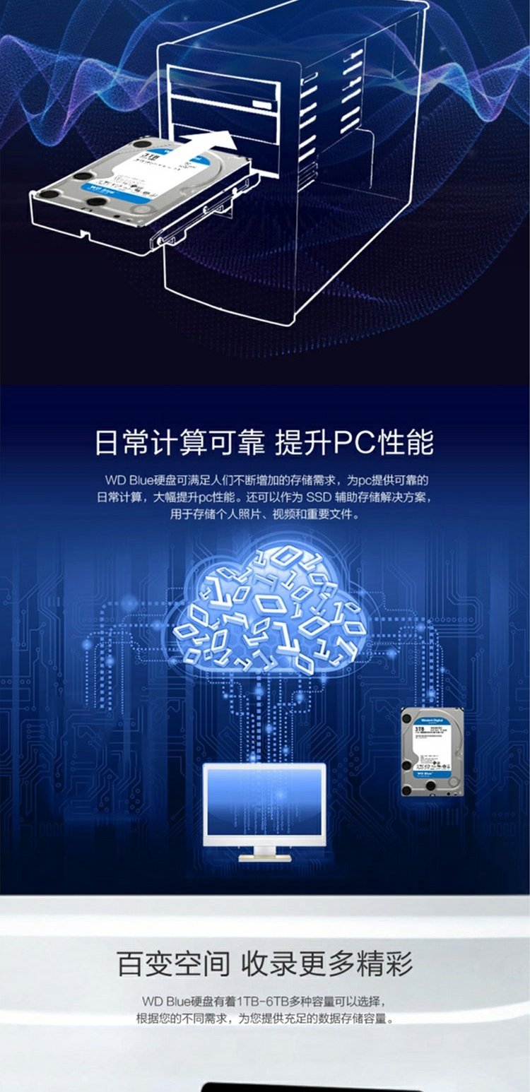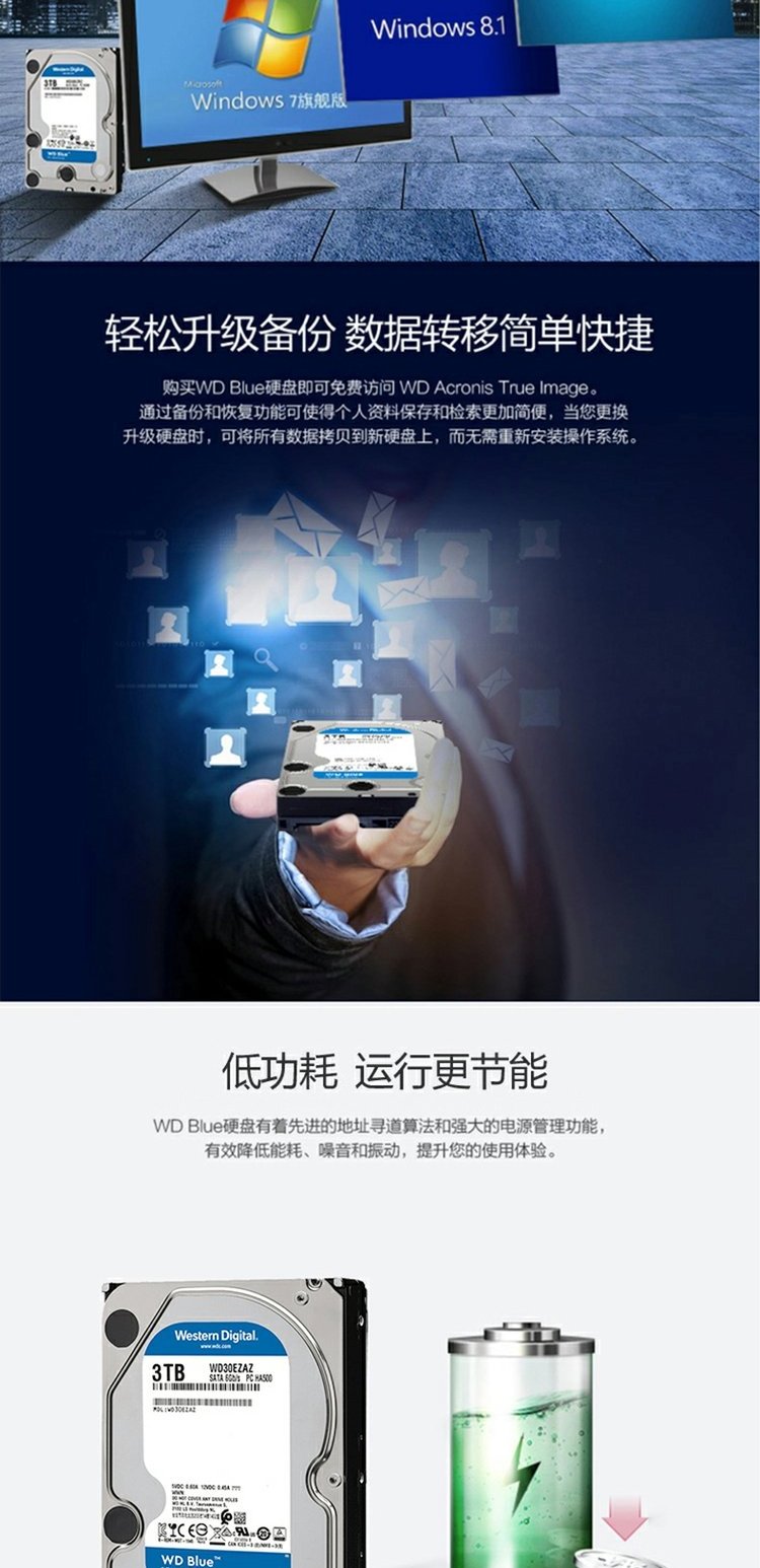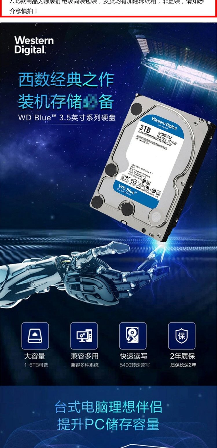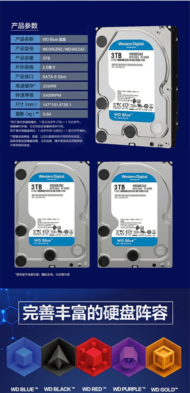 WD/西部数据 WD30EZAZ Blue Disk 3T Hard Disk 3,5 -INCH SATA3 Механический жесткий диск 3TB SATA6GB/S 256 МБ вместо WD30EZRZ