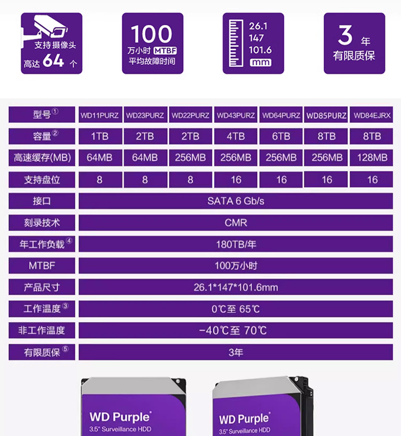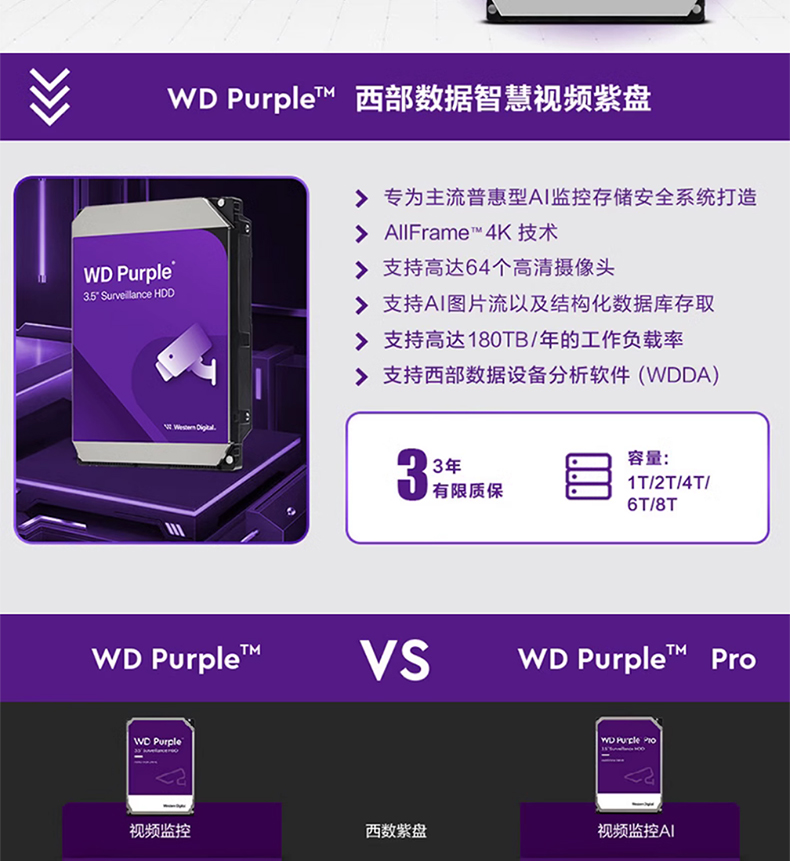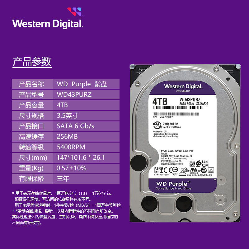 WD Western Data WD43PURZ 1T2T4T6T6T6T8T Фиолетовый диск 3.5 -INCH SATA Security Monitoring Специальный жесткий диск
