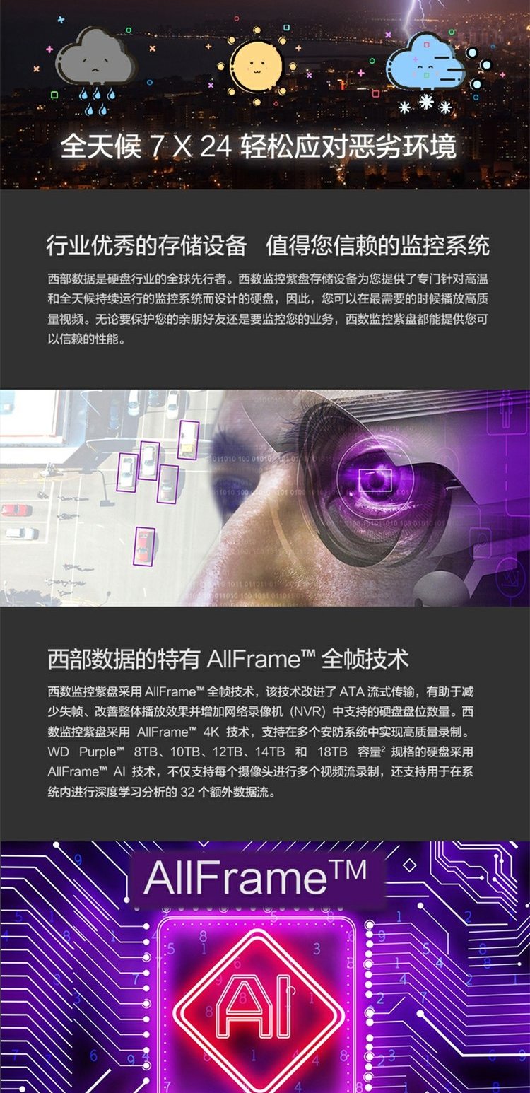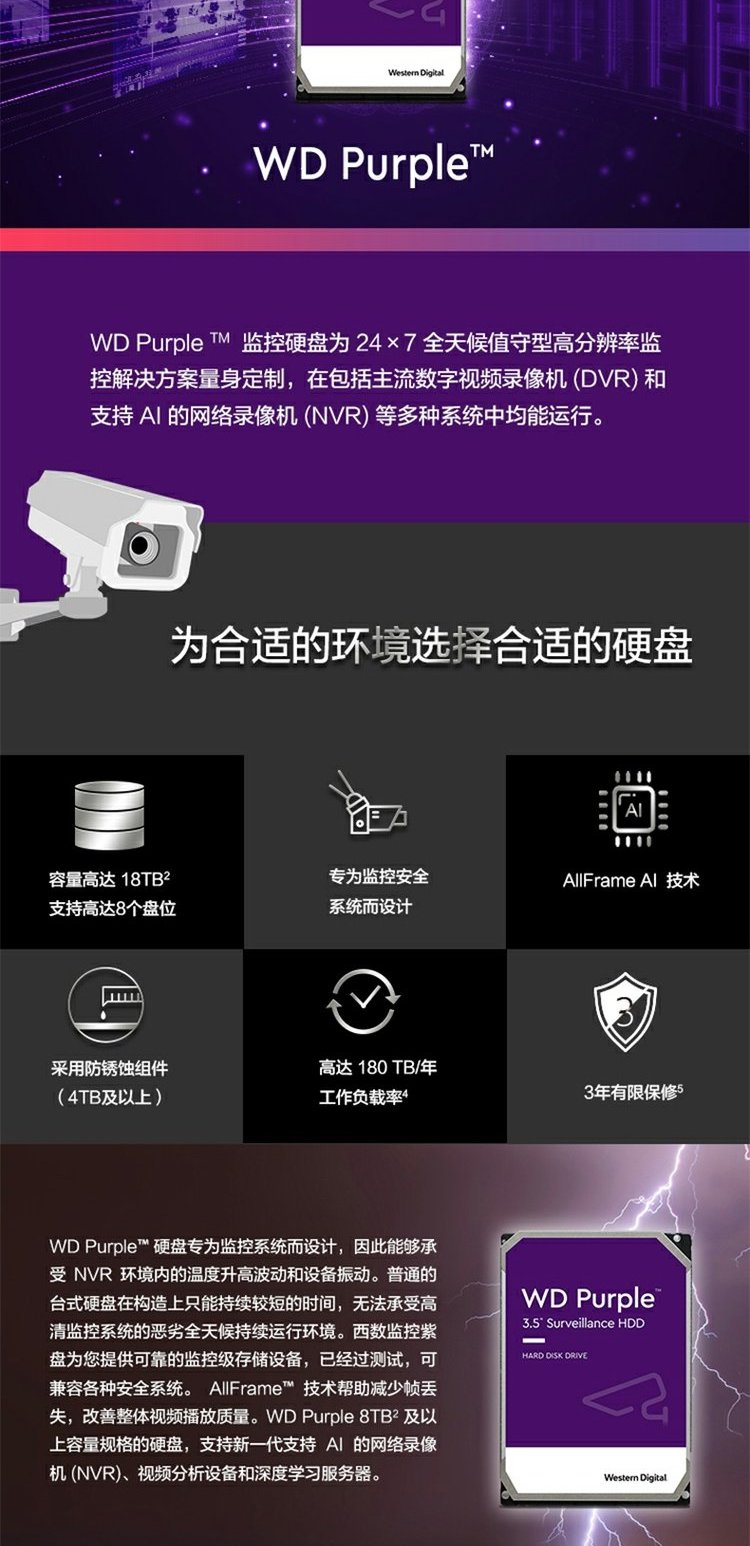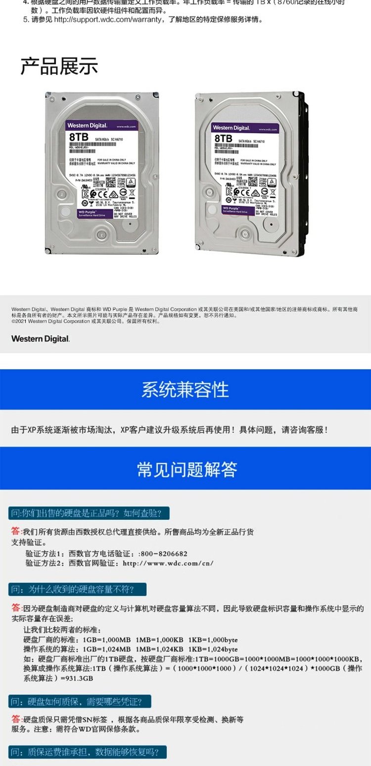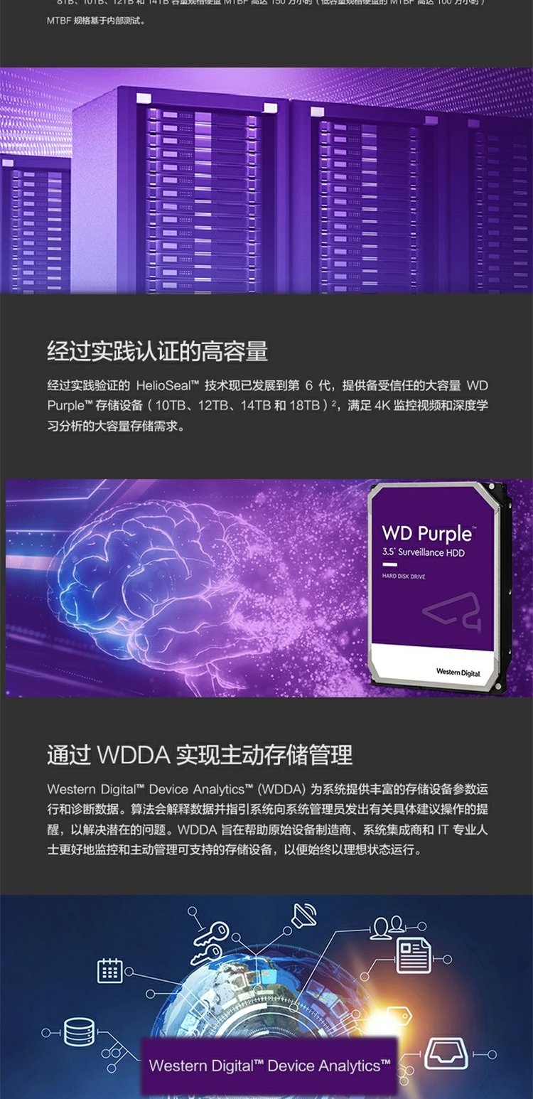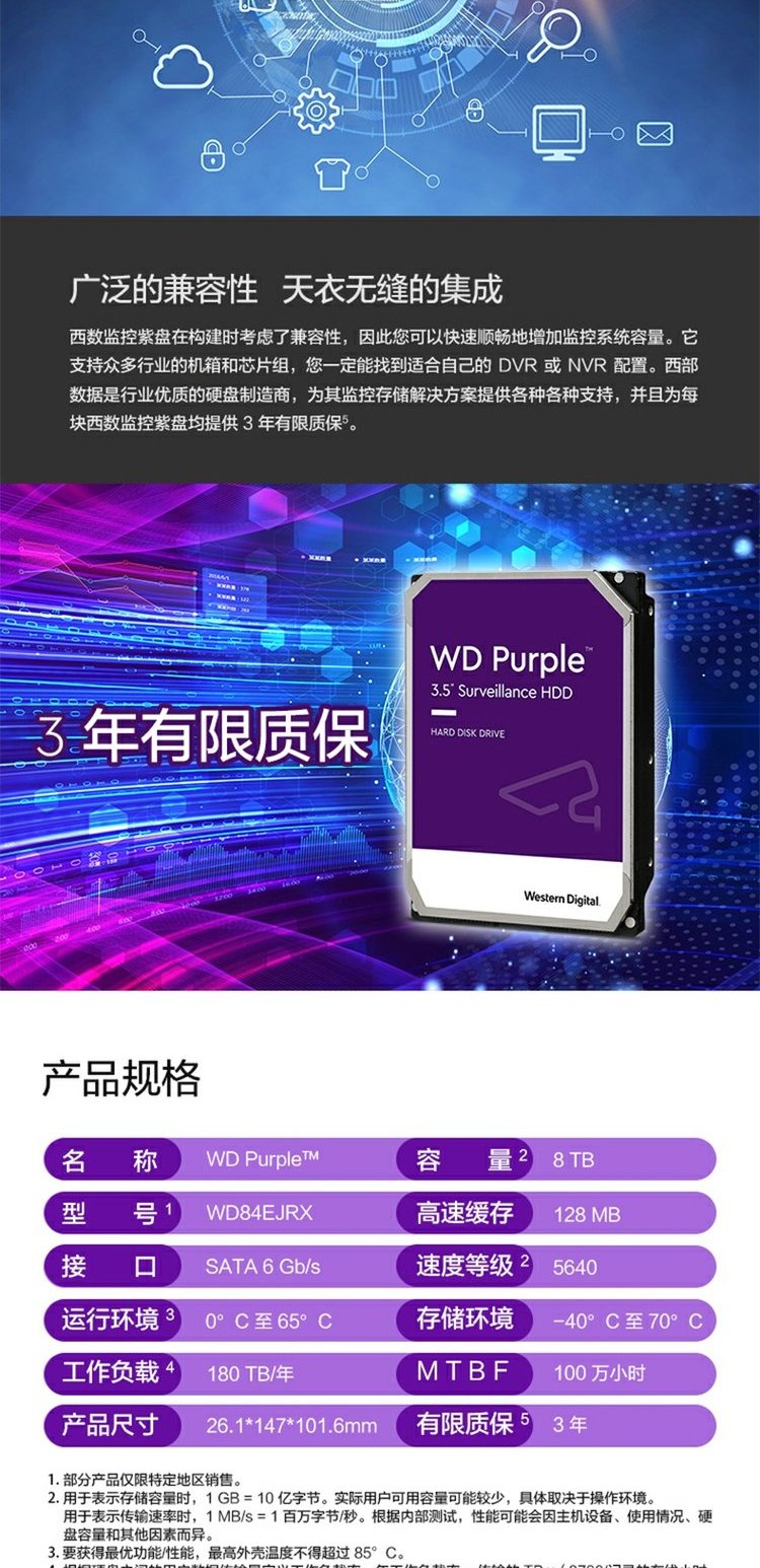 WD/西部数据 8 ТБ мониторинг жесткий диск wd84ejrx Purple Disk 8t Мониторинг специального жесткого диска SATA3