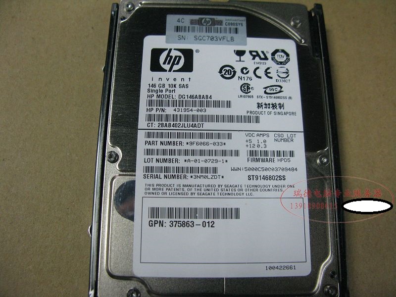 Лицензированный HP 146G 2.5 SAS 432320-001 431958-B21 Оригинальная разборка HP-сервера, Seagate Seagate Corporation (ST9146802SS) с оригинальными кронштейнами, новым цветом, статической упаковкой пакетов, статической упаковкой с электрическим пакетом.Год гарантии (замена)