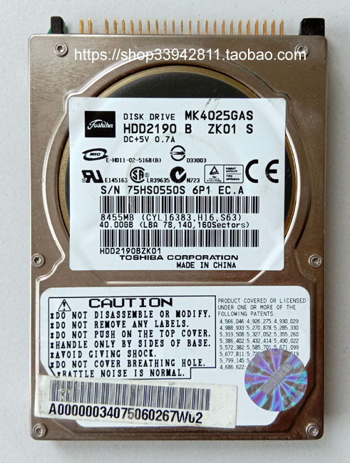 ◇ 4жесткий диск ноутбука 0G,2,5 дюйма,Toshiba модель: MK4025GAS/HDD2190, емкость: 40 ГБ. Состояние хорошее, битых секторов нет, загрузка нормальная.