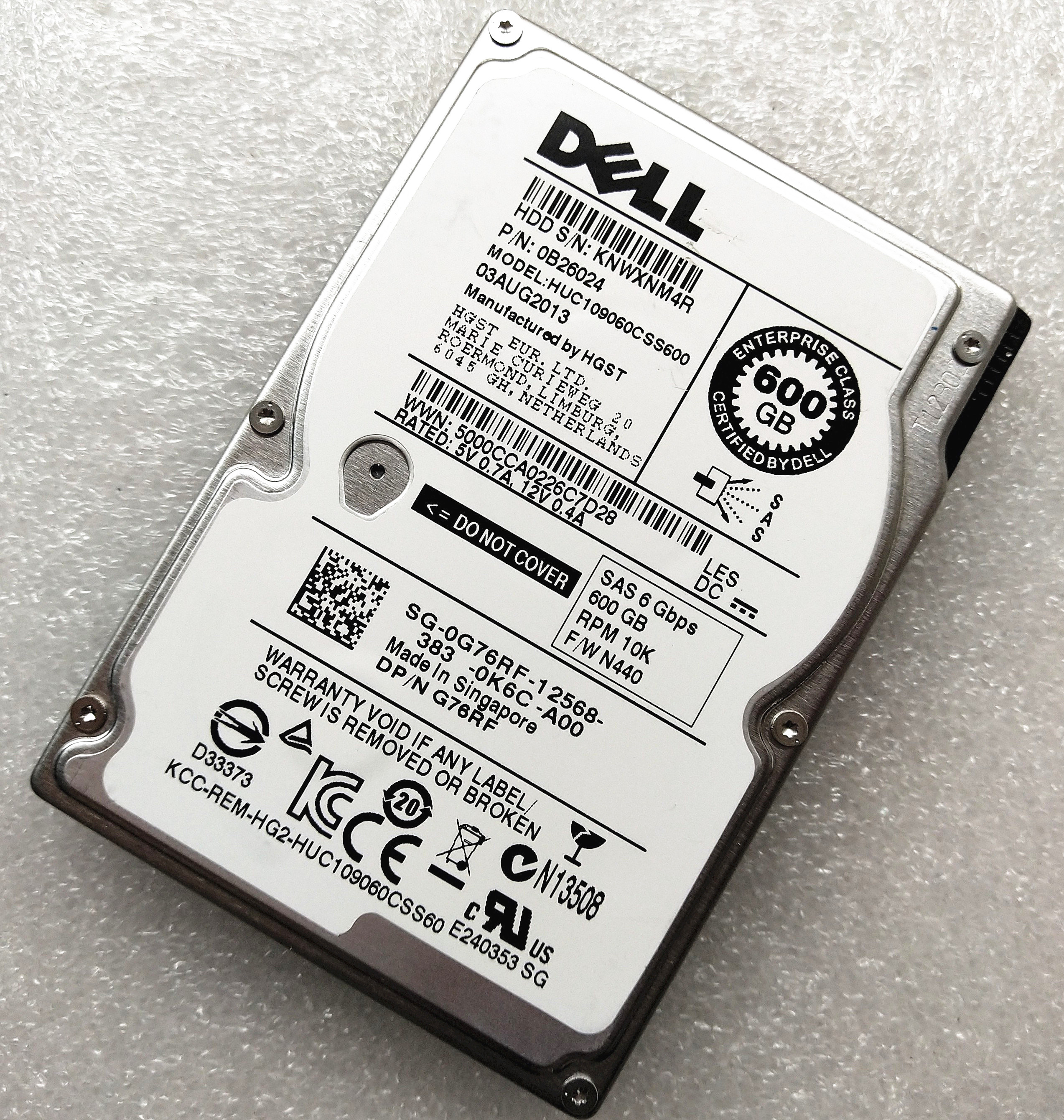 Dell 600G 2,5 10K SAS 6GB Сервер Hard Disk 0G76RF 8WP8W.