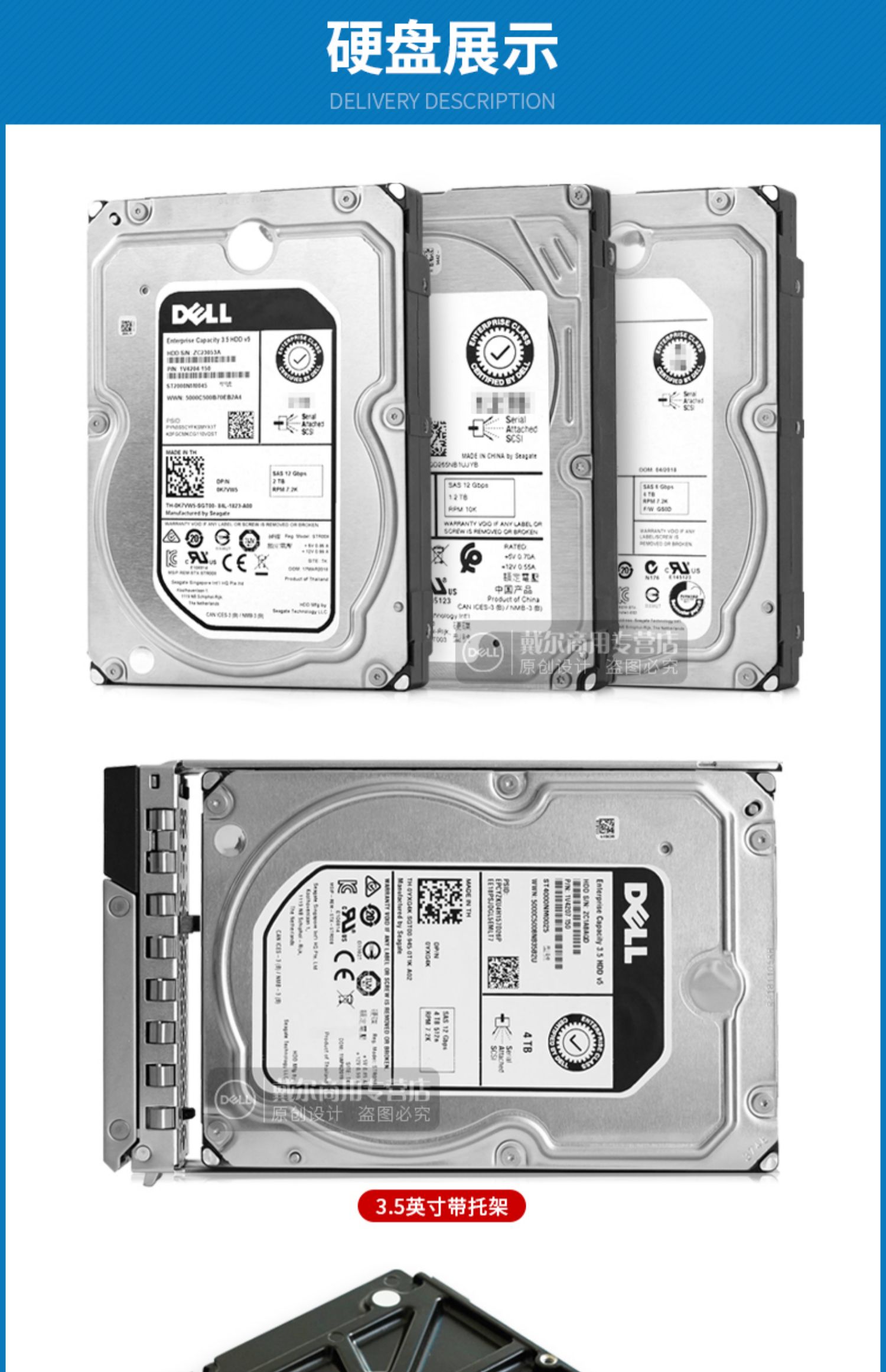 Новый оригинальный Dell/Dell 4T/4TB SAS 7.2K 3.5 -INCH Enterprise Server жесткий диск
