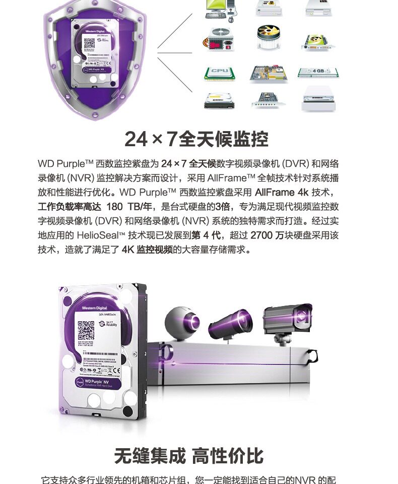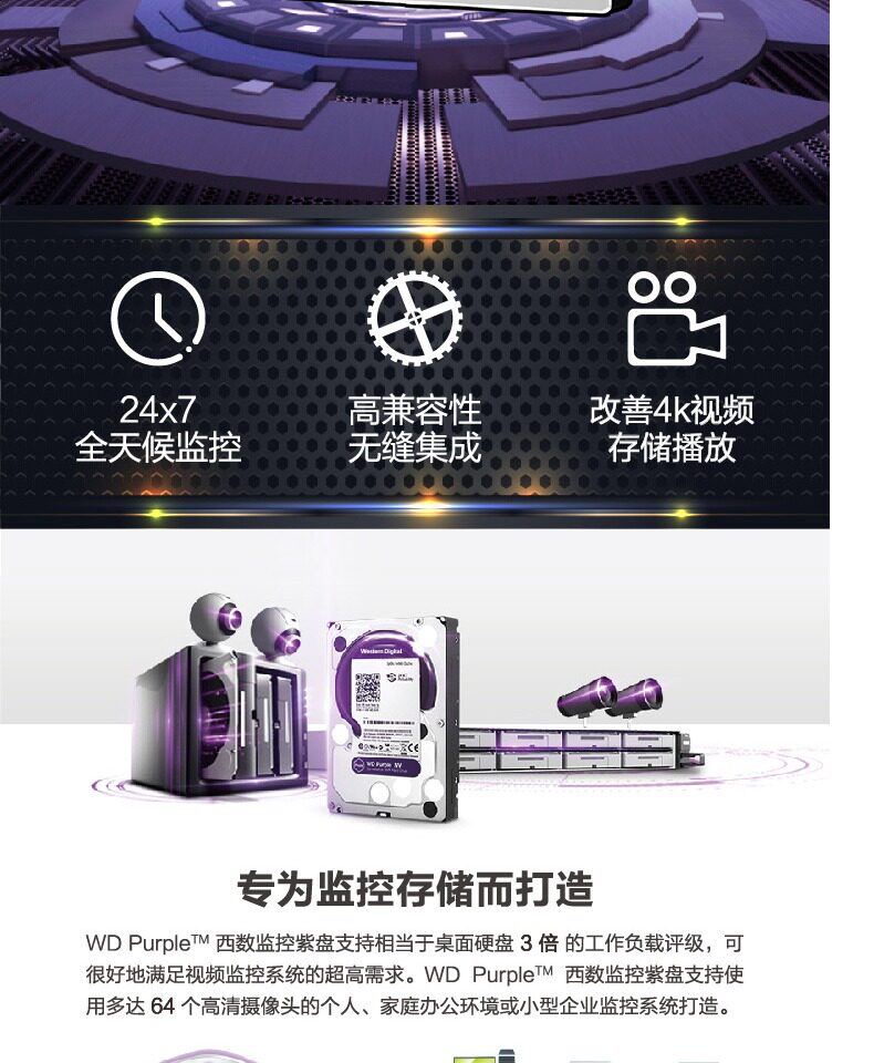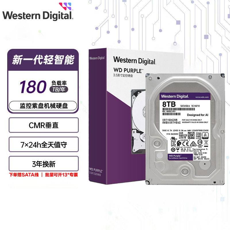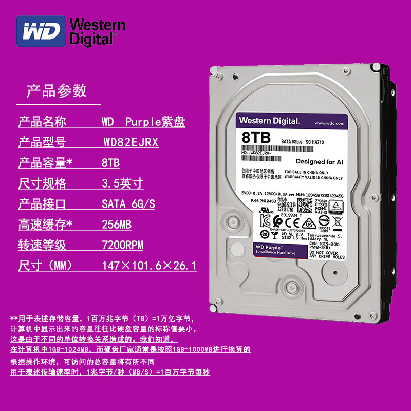 WD/西部数据 WD84EJRX 8T Мониторинг жесткого диска фиолетовый диск 8T Мониторинг специального фиолетового диска SATA3