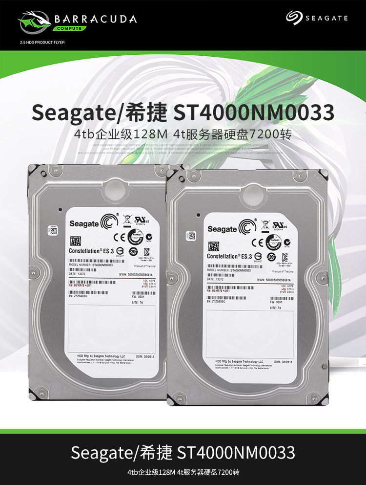 Seagate ST4000NM0033 V5 Series 7200 об / мин 128M4T Enterprise Monitoring Механический жесткий диск SEAGATE 4TB
