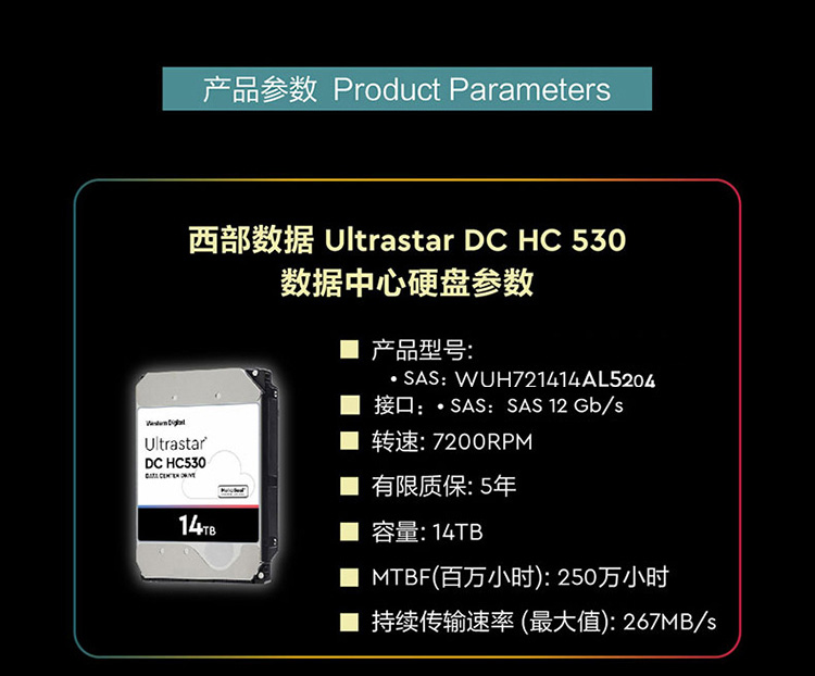 WD/Western Digital HC530 WUH721414AL5204 14T Enterprise SAS SAS EROTIC 3.5 -INCH HARD DISK 14TB