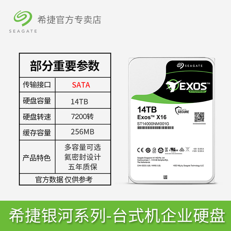 希捷 Galaxy 14t Exosx16 серия Enterprise Server ST14000NM001G Сервер SATA Интерфейс RAID RAID MARRE