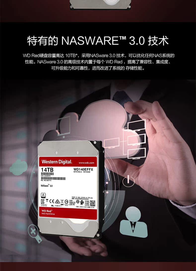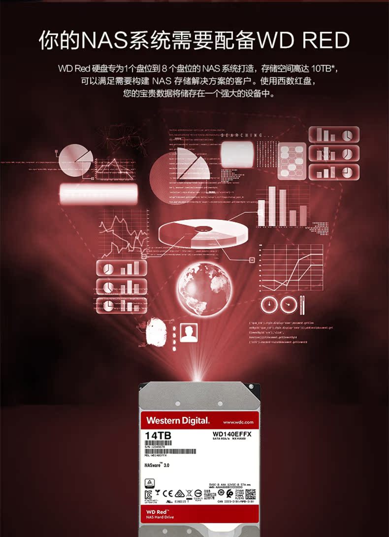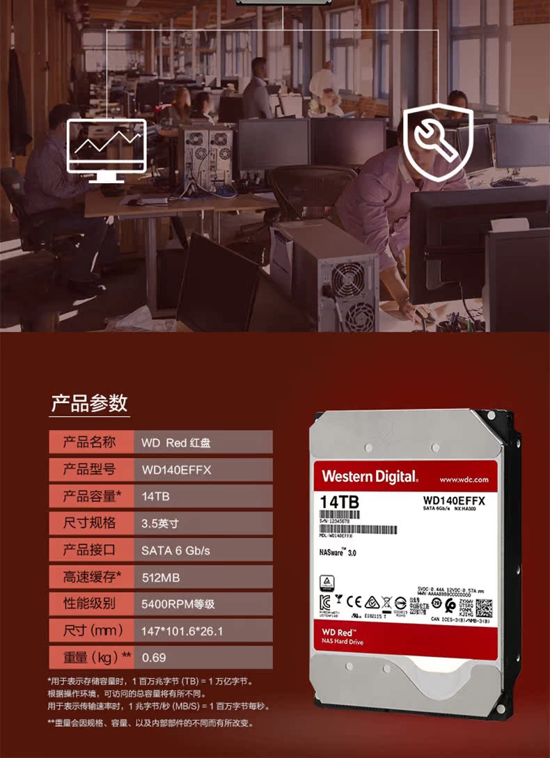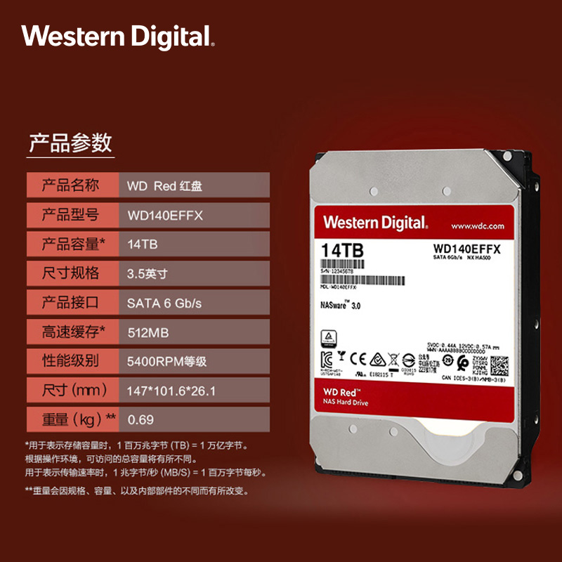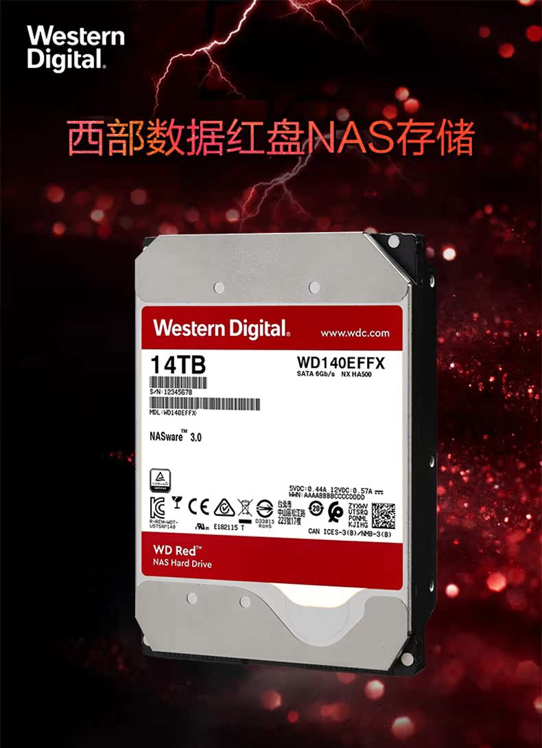 WD/西部数据 NAS Red Disk 14tb 512M SATA Network Storage Hard Hard Disk (WD140EFFX)