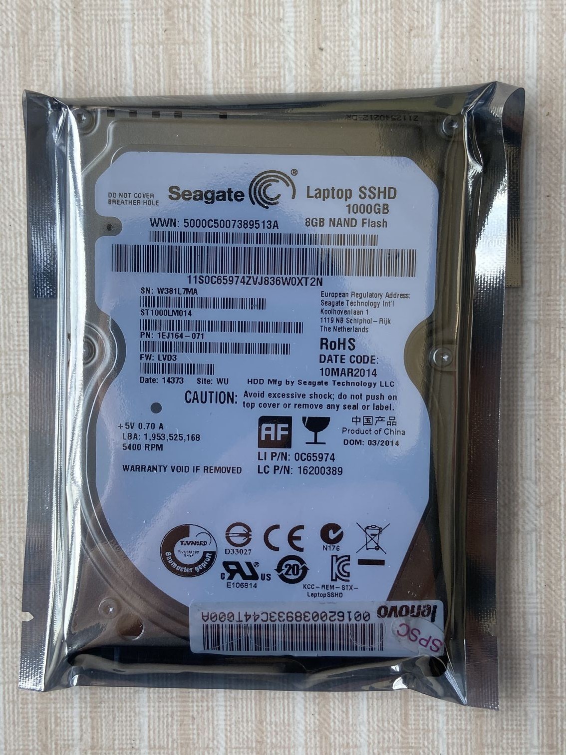 PMR вертикальный 2,5-дюймовый твердотельный гибридный жесткий диск для ноутбука ST1000LM014 Seagate 1T SSHD 8G 9,5 мм