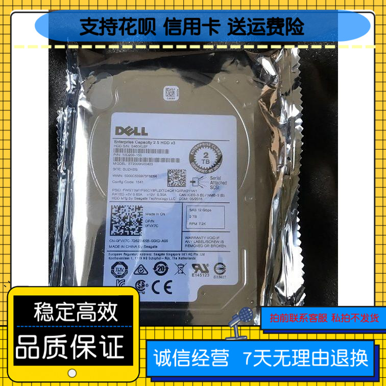 Dell 2TB 2,5 -INCH SAS 12 Гбит / с 7,2K FVX7C ST2000NX0433 Сервер жесткий диск
