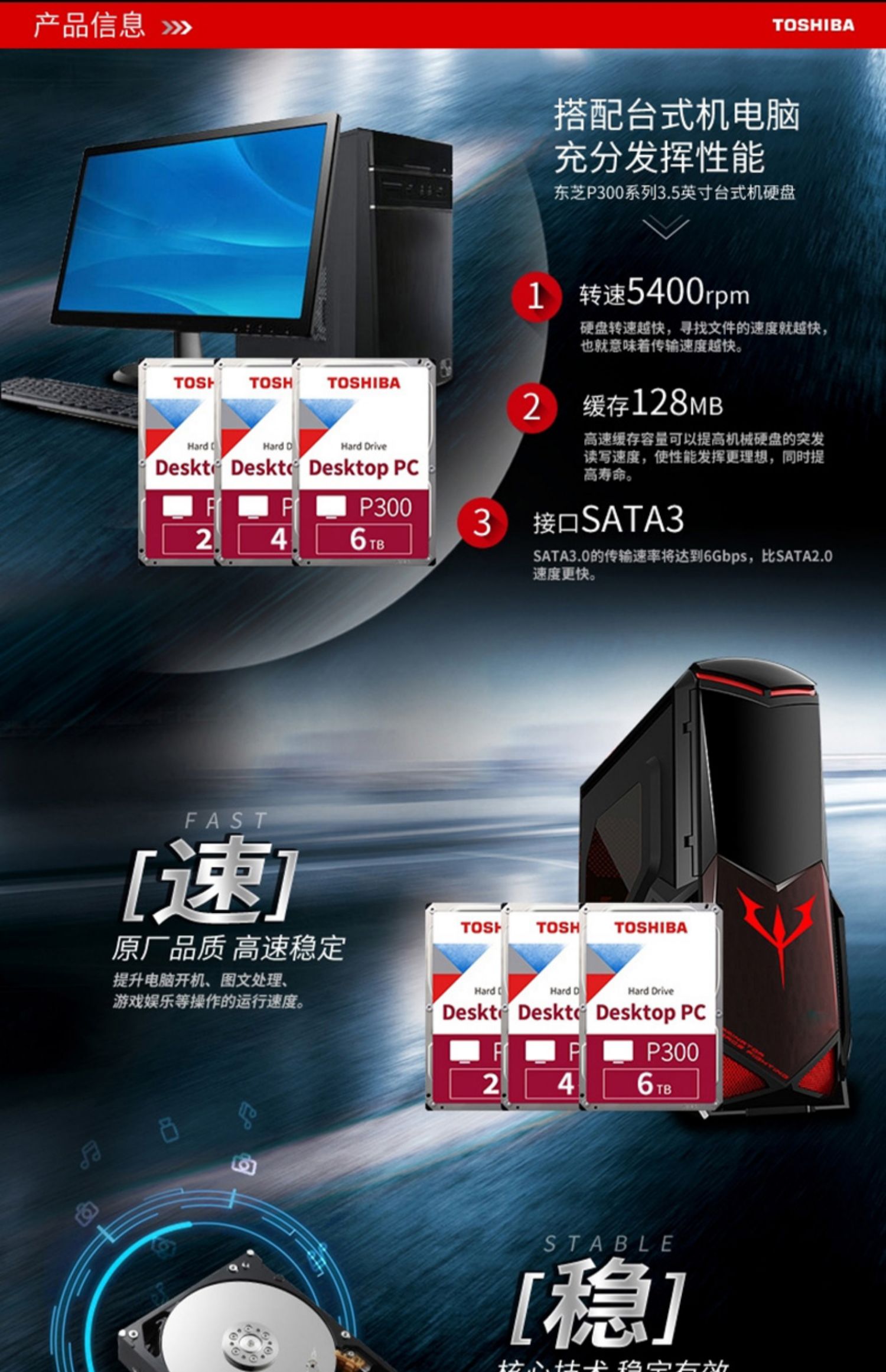 Toshiba P300 Компьютерная машина Механический жесткий диск 4T 5400 об / мин 128M Мониторинг ящика 3,5 дюйма