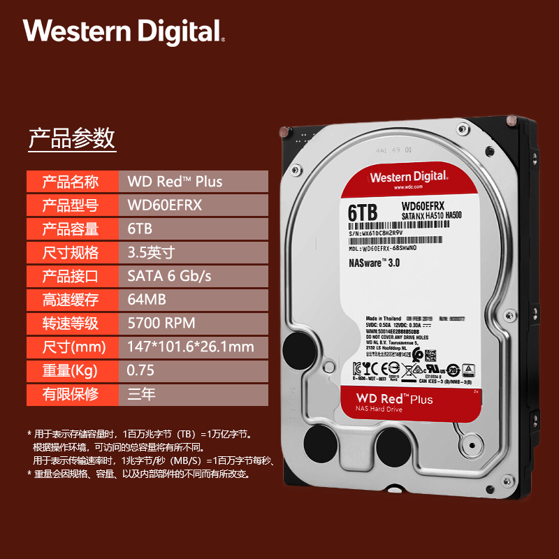 WD/Western Data NAS Hard Disk 6T Server Hard Disk 6T жесткий диск плюс WD60EFZX