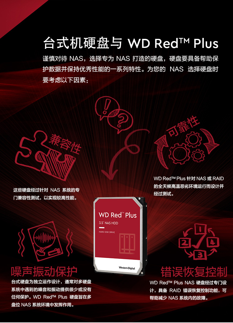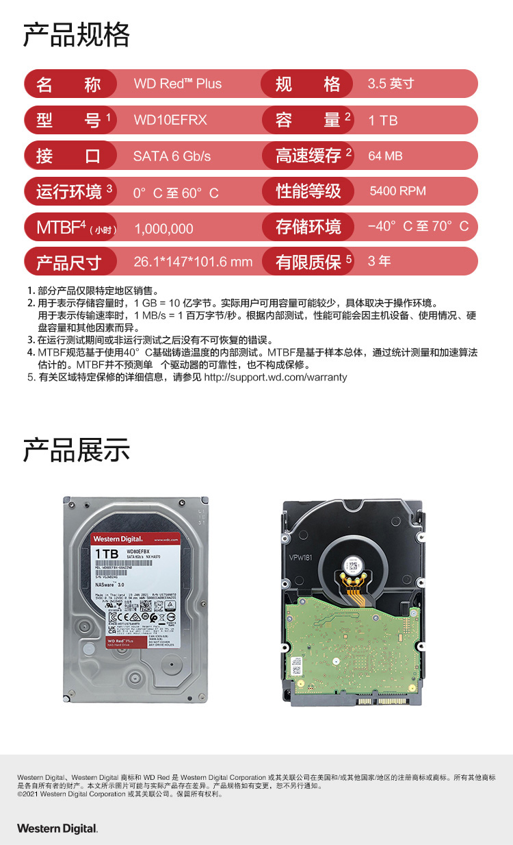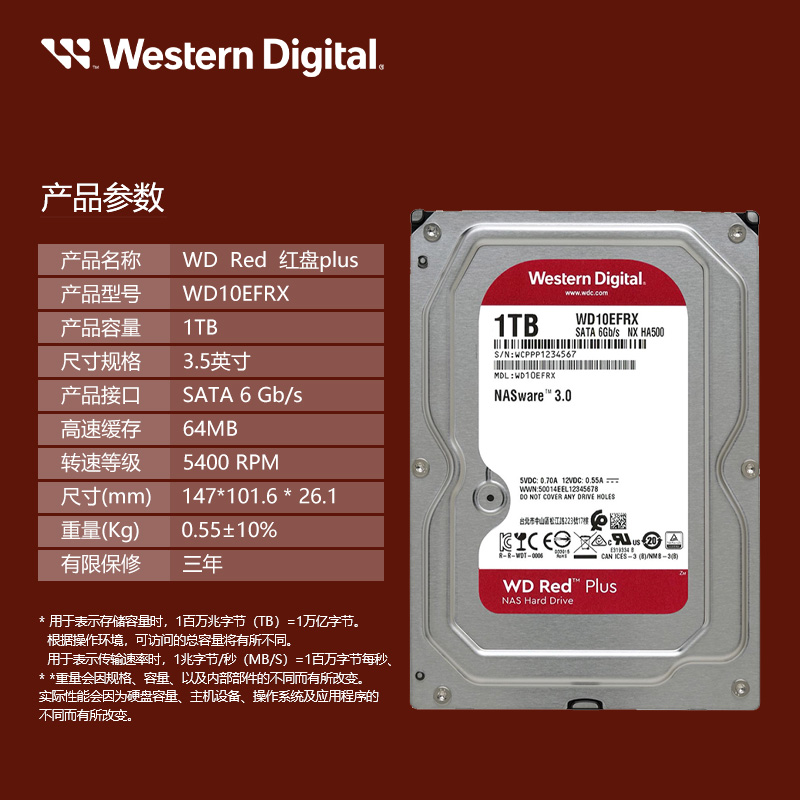 WD/Western Data NAS Hard Disk 1T Server NAS Hard Disk 1T WD Red Disk Plus (WD10EFRX)