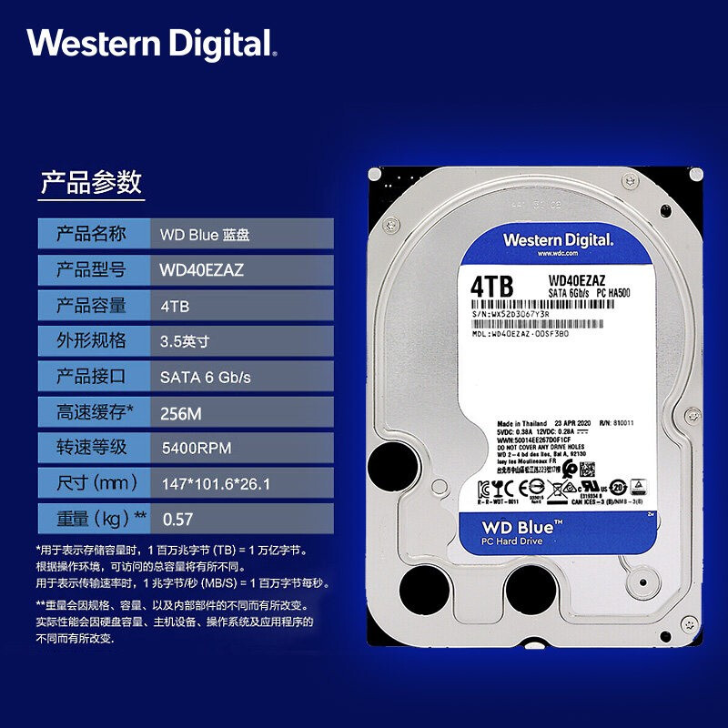 Blue Disk 4T WD40EZAZ WEST Digital 4T Machinery Hard Disk 3.5 -INCH SATA Склад Установленный компьютерный последовательный порт