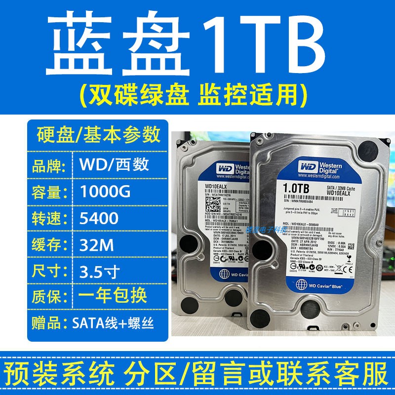 WD/Western Digital 500G Одиночный диск, синий диск 1 ТБ 2TB 3TB 4TB настольный настольный компьютер Механический жесткий диск 3,5-дюймовый мониторинг универсальный
