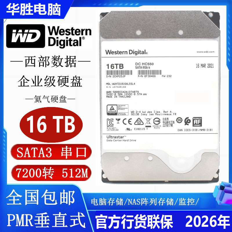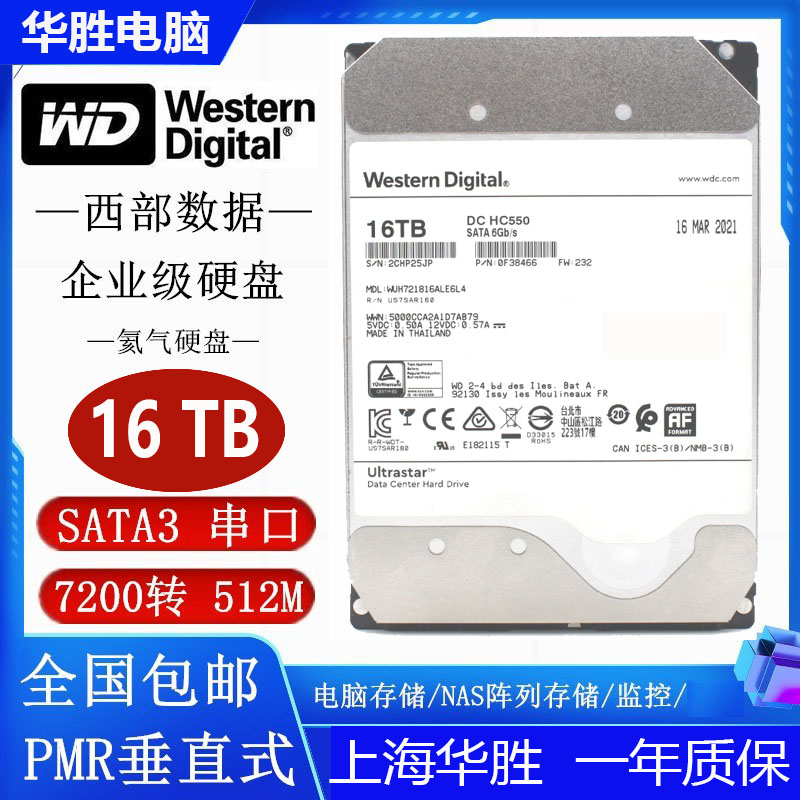WD/西部数据 HC550 HE 6 16T 14T 12T 8T 6TB 4TB 3,5 -INCH MECHANICAL HARD DISK