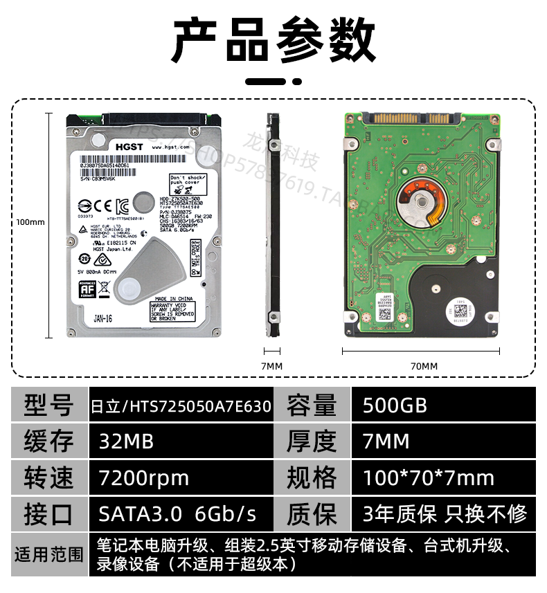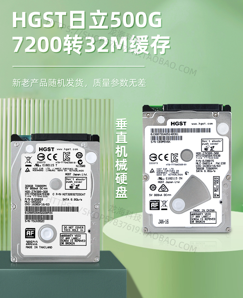 Hitachi Hard Disk 14 -летний магазин Ten Colors Hgst500g Машина 2.5 -INCH 320G Компьютерная записная книжка 7200 об / мин 3 игра вертикальная 1t 1T