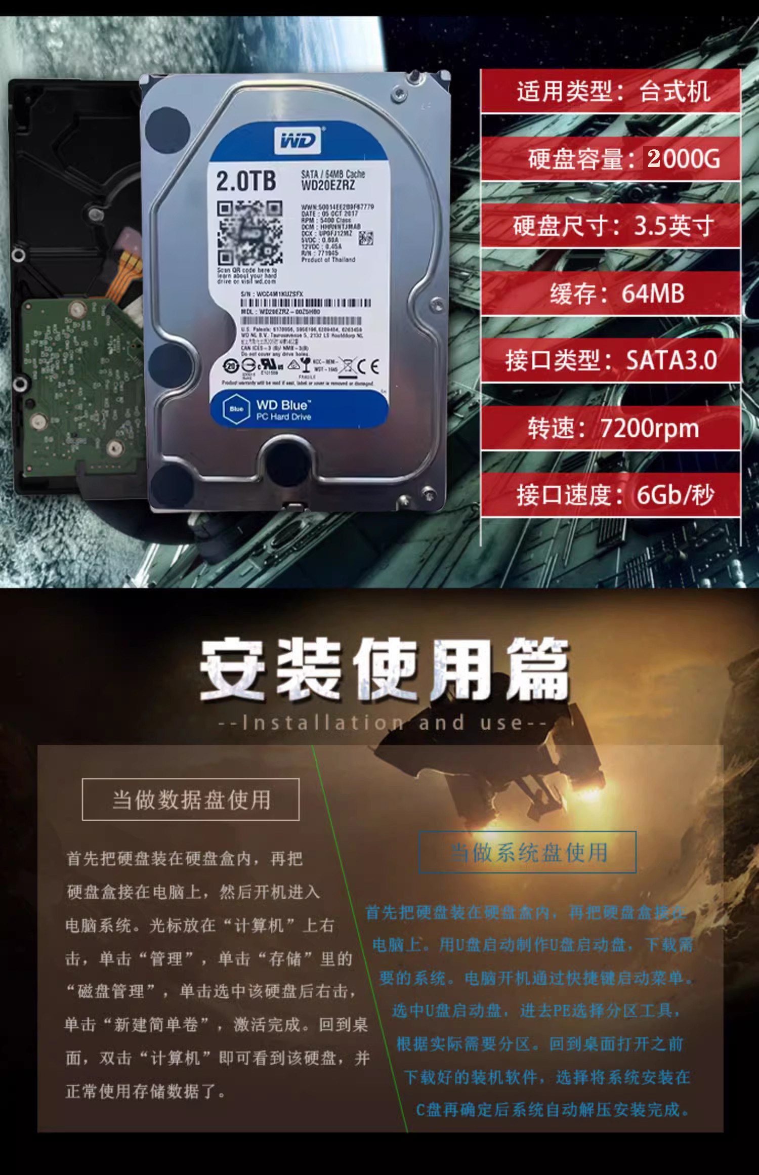 Зарядка Новый WD/Western Data 2TB настольный настольный механический жесткий диск.