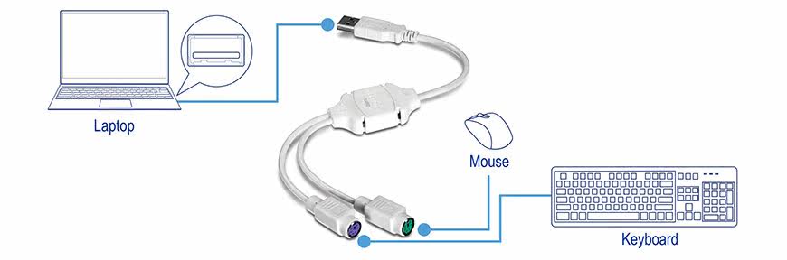 - Подключите клавиатуру PS/2 и мышь к USB -порту в вашей компании