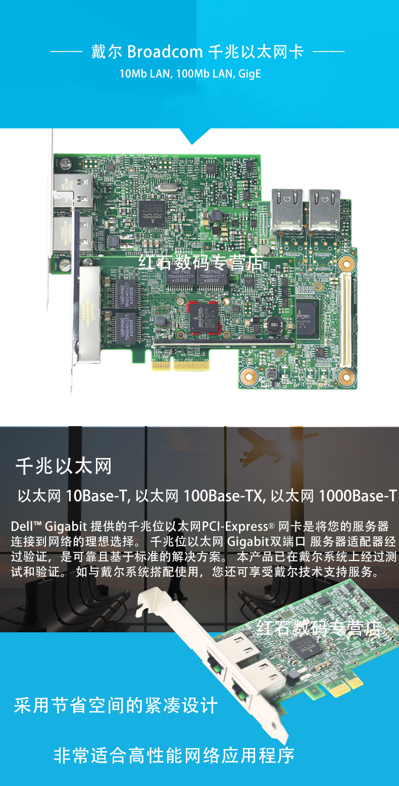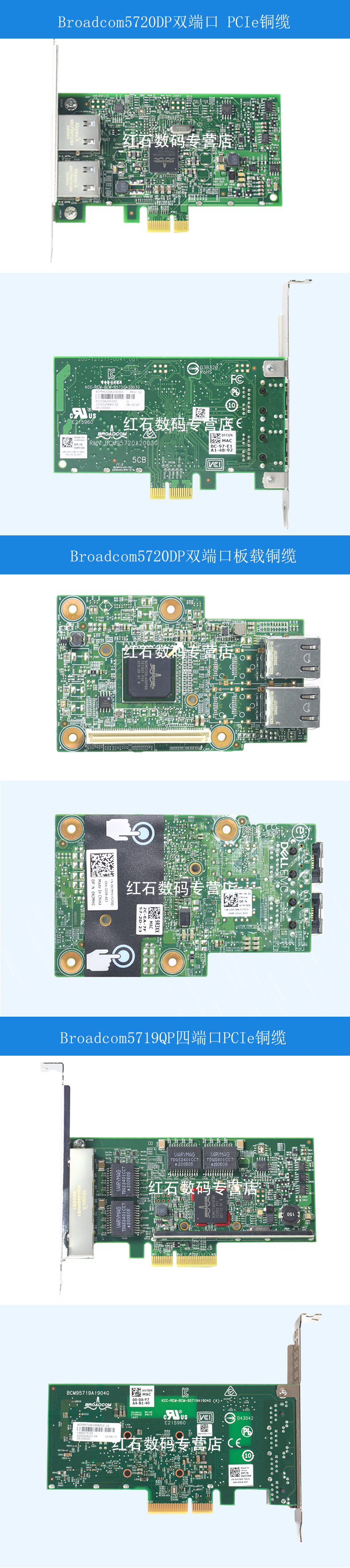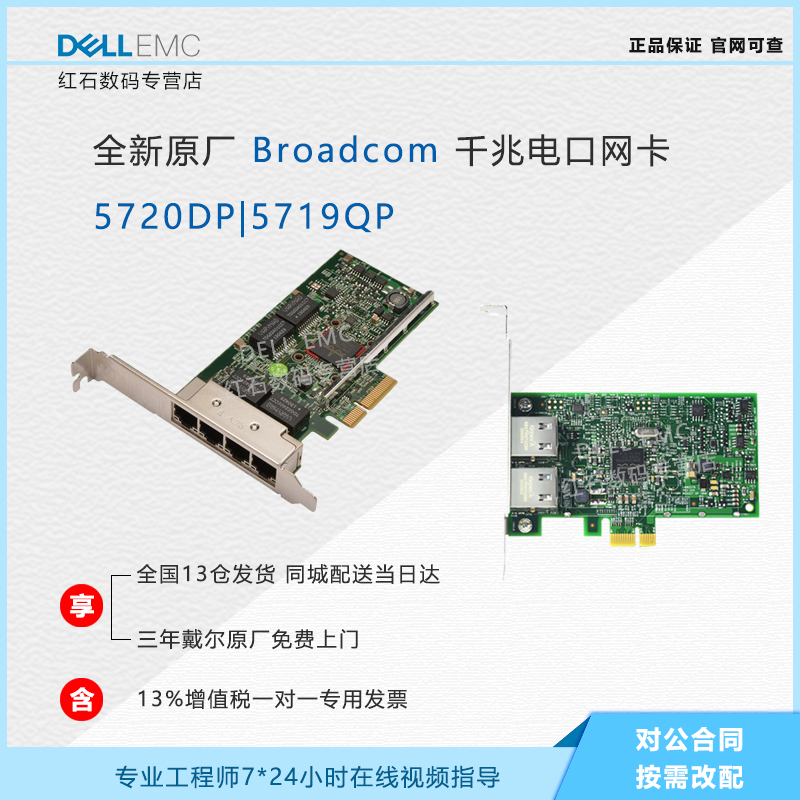 Dell/Dell's New Broadcom5719qp четырех порта/5720DP Dual -port 1000M (Gigabit) Медная кабельная сетевая карта RJ45 HY7RM 0FCGN 557M9