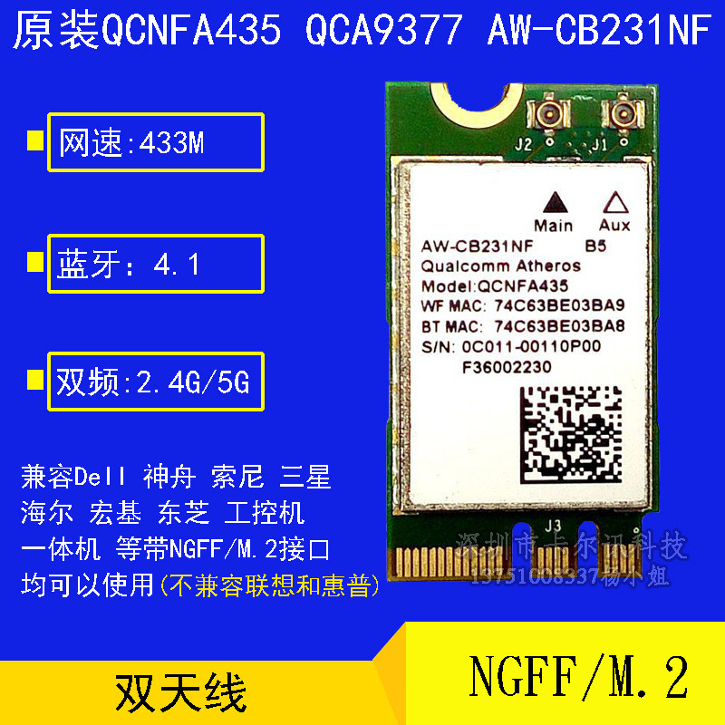 ASUS AW-CB231NF QCNFA435 QCA9377 Двойная беспроводная сетевая карта AC433M +4.0 Bluetooth