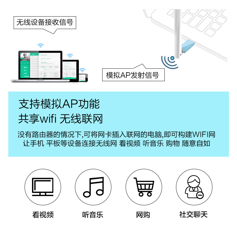 Mercury Free USB Wireless Network Card носит настенный настенный аппарат машины Pen Ji Computer Wi -Fi сетевой адаптер маршрутизатор