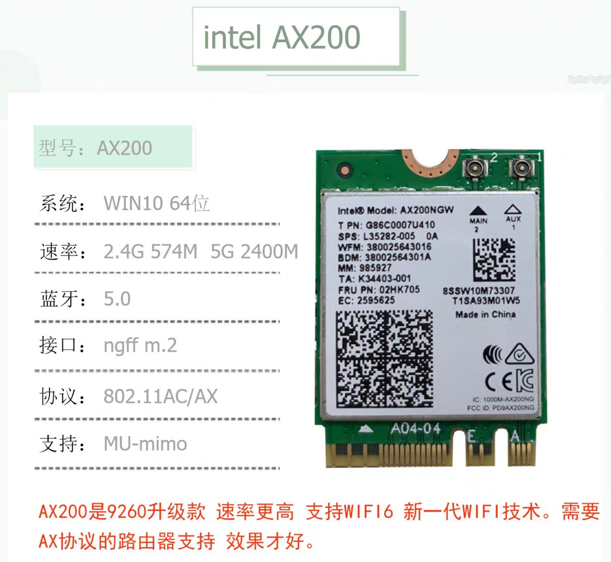 Xiaoxin 700 AIR13 14 15 Pro Tide 7000 Y7000 High -Speed Wireless Network Card WiFi6 AX200