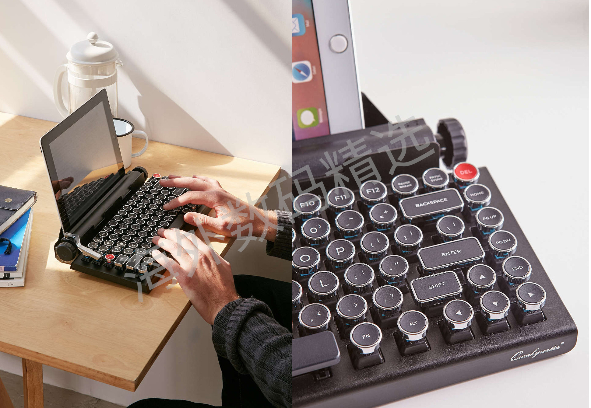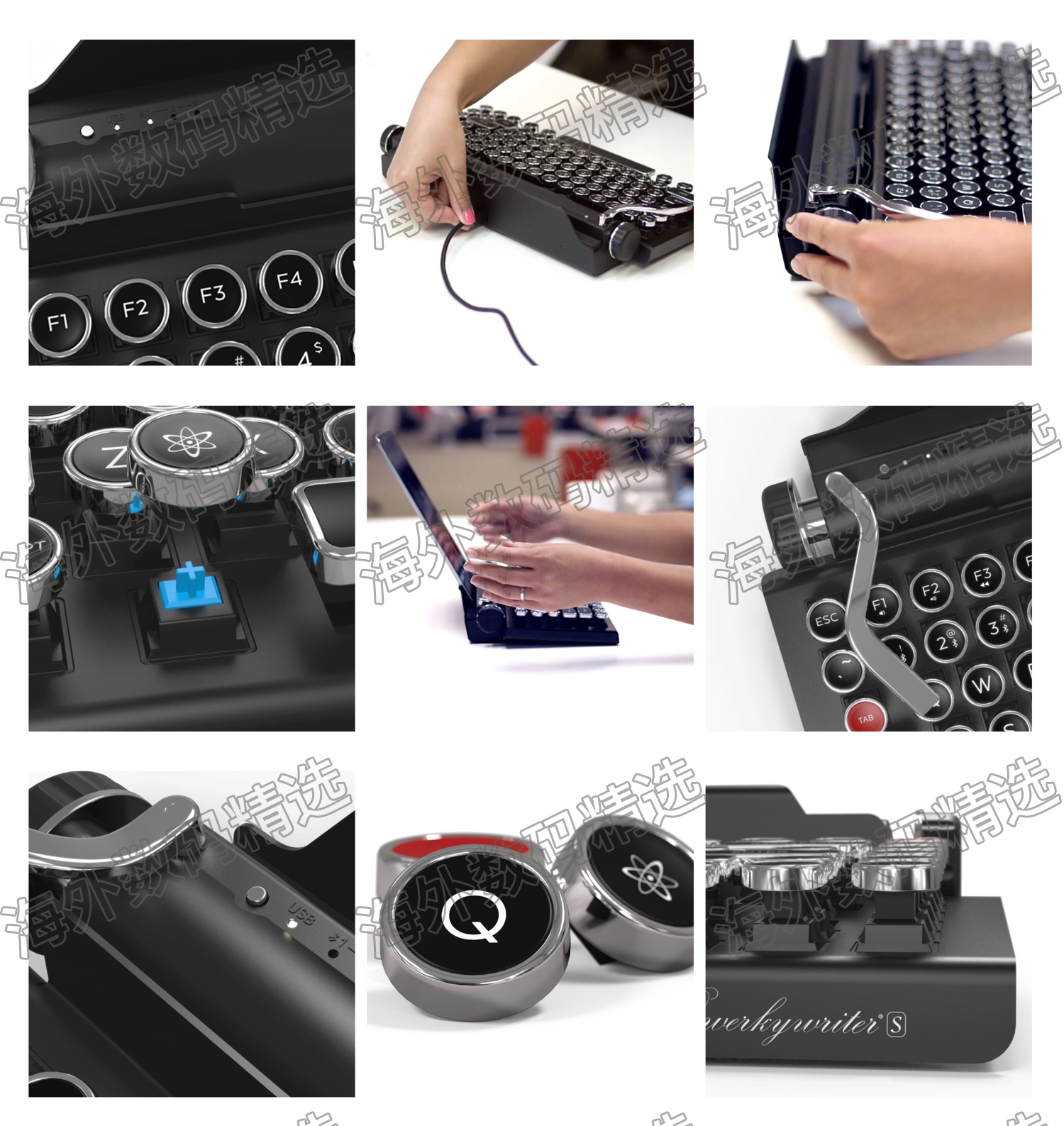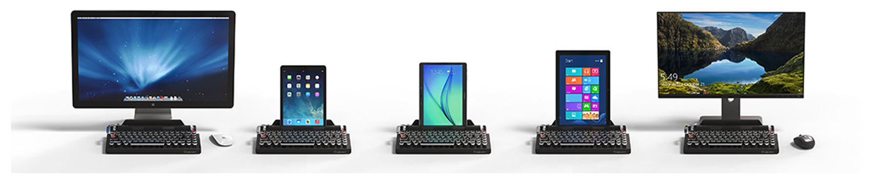 QwerkyWriter Retro Mechanical Mac 84 Клавиша Blue Axis Antique Pyswriter Bluetooth Беспроводная клавиатура