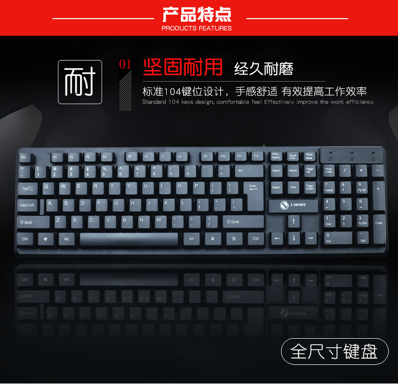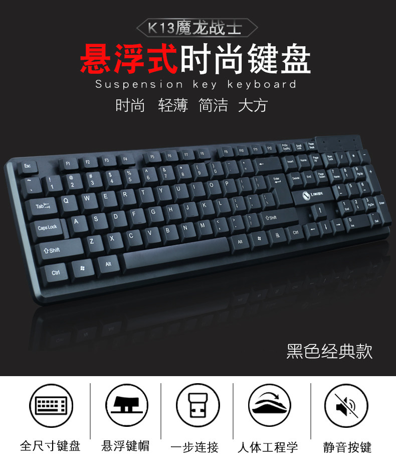 Limei K13 проводной клавиатуры водонепроницаемый дом Аутентичный тихий офисный настольный компьютер USB одиночная клавиатура