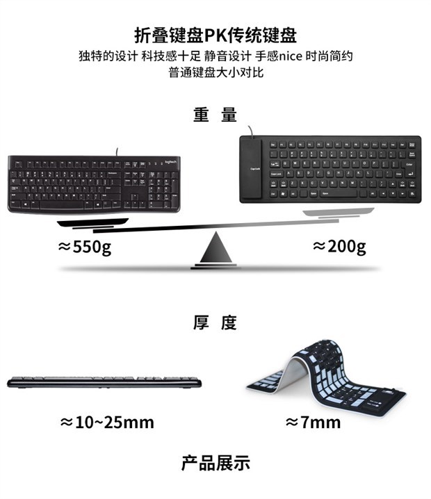 Портативный ноутбук, силиконовая легкая и тонкая клавиатура для путешествий